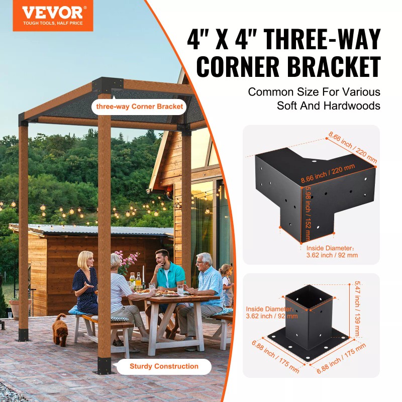 VEVOR 4''x4'' Pergola Bracket Kit 3-Way Woodworks DIY Post for Gazebos 8 pcs