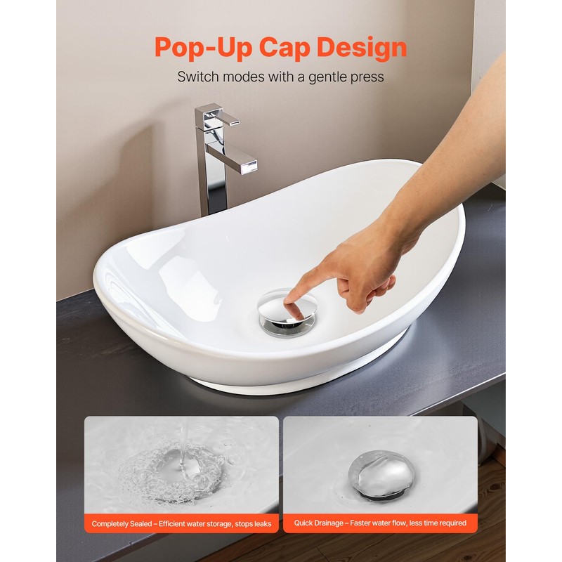 VEVOR Bathroom Sink Drain Without Overflow, Brass and 304 Stainless Steel Pop Up Drains, Anti-Clogging Vessel Drain Strainer, All Metal Hair Catcher Drains Stopper, for Sinks Without Overflow Holes
