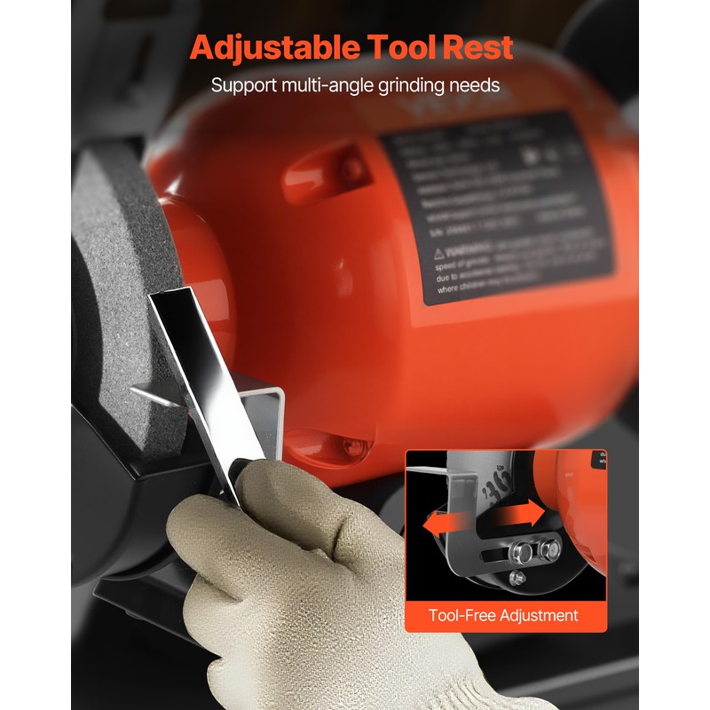 - Adjustable Work Rest: The tool rest can be easily adjusted without tools, perfectly accommodating different grinding angles to ensure smoother, more precise grinding results