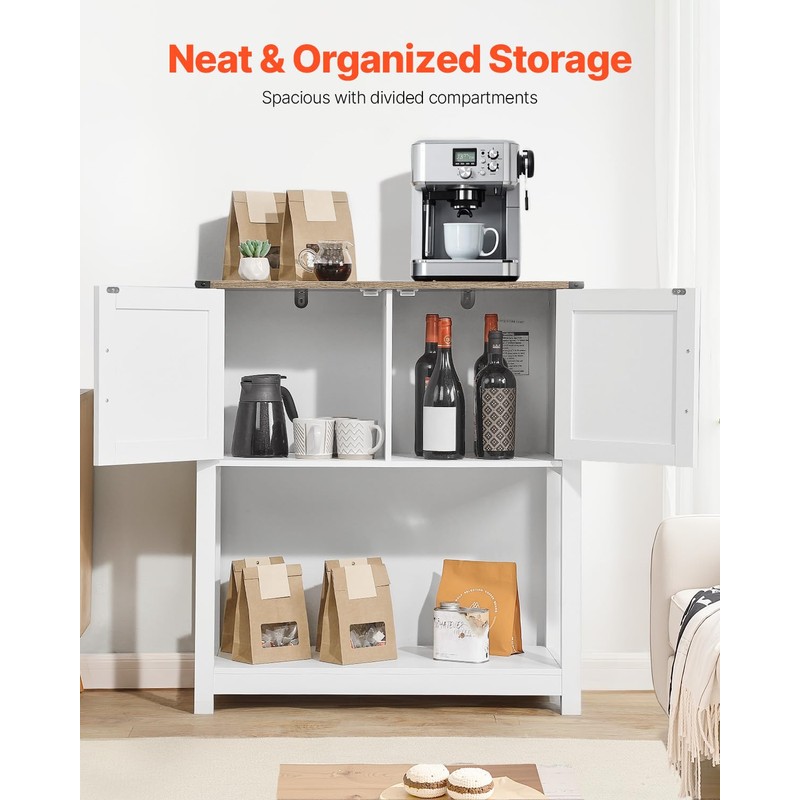 VEVOR Coffee Bar Cabinet, 31.5 Inch Farmhouse Coffee Bar Cabinet with Storage, Coffee Bar Table with Magnetic Doors, Farmhouse Sideboard Buffet Cabinet for Living Room, Entryway
