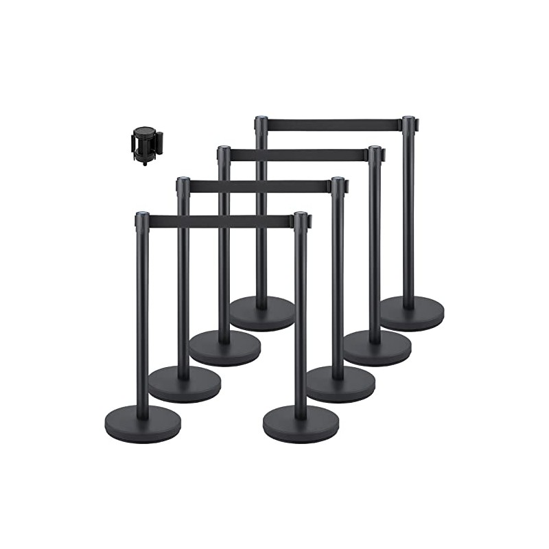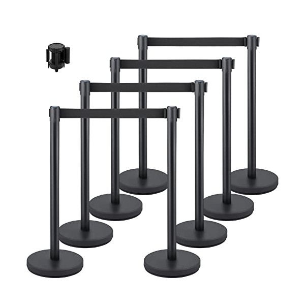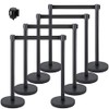 VEVOR Crowd Control Stanchion, Set of 8 Pieces Stanchion Set, Stanchion Set with 6.6 ft/2 m Black Retractable Belt, Black Crowd Control Barrier w/Concrete and Metal Base - Easy Connect Assembly