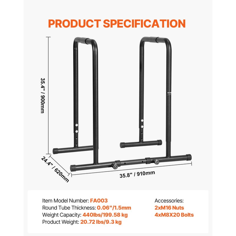 VEVOR Dip Bar, 31 to 35 Inch Height Adjustable, 440LBS Load Capacity, Heave Duty Parallette Push Up Stand, Fitness Workout Dipping Bar Station Stabilizer, Parallel Bars for Strength Training Home Gym