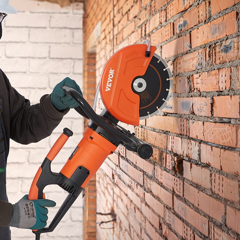 - Wet Cutting without Dirt: VEVOR electric concrete saw provides a better cutting vision by avoiding the debris that spreads around in traditional cutting operations. Plus, it comes with a wet-cutting attachment, ensuring direct water spraying, eliminating the need for one-handed watering and cutting, and improving operational security.