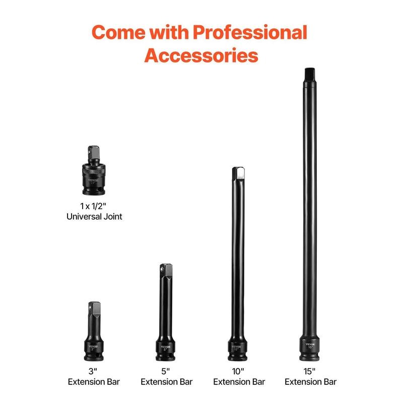 VEVOR Impact Socket Set 1/2 Inches 43 Piece Impact Sockets, Standard Socket Assortment, 1/2 Inches Drive Socket Set 6-Point Sockets Metric 9-30mm (Standard/Deep):_1/2 Inches - 43 Piece (Standard/Deep)