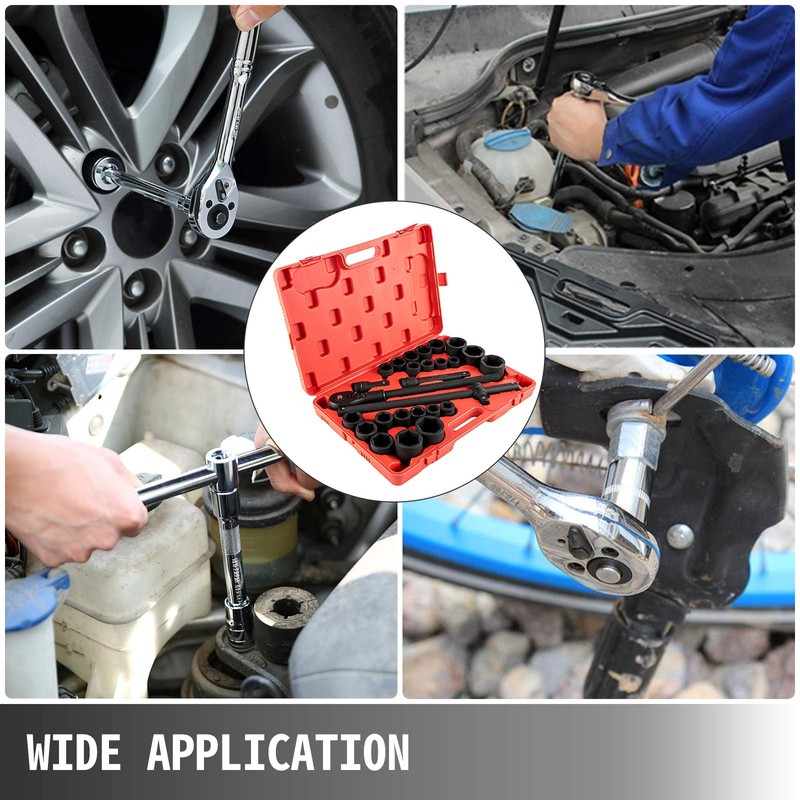 - Compact & Portable: The 3/4 inches impact socket set includes a steel ratchet and a sturdy storage case for organization and transport making this a great group of sockets for mechanics.