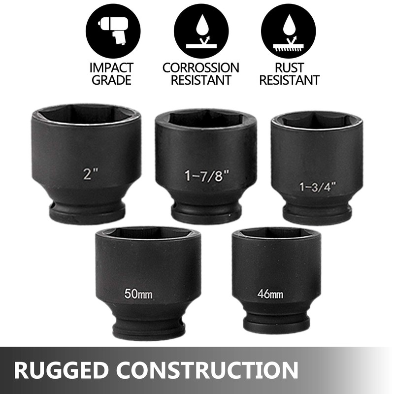- 22 Sockets Included: This effort-saving 3/4 inches drive impact socket set comes with 22 impact drive sockets: 7/8’’, 15/16’’, 1’’, 1-1/8’’, 1-3/16’’, 1-5/16’’, 1-3/8'', 1-7/16’’, 1-5/8’’, 1-3/4’’, 1-7/8’’, 2’’; 22 mm, 24 mm, 27 mm, 30 mm, 32 mm, 36 mm, 38 mm, 41 mm, 46 mm, 50 mm.