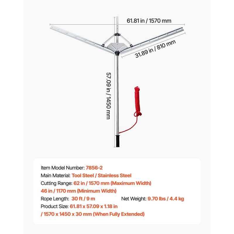 - Adjustable Width: The aquatic weed rake features snap-button adjustable 2 cutting widths (max 62 in, min 46 in), making it ideal for various weed densities. The sharp 2 mm tool steel blades cut cattails and lilies easily, restoring clean water areas.