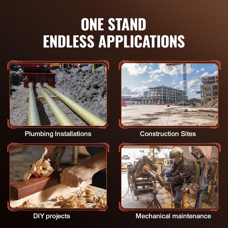 • Built for the Long Haul: Crafted from robust #45 steel, our pipe stand is engineered to withstand wear and tear, ensuring durability and consistent performance over the long run.