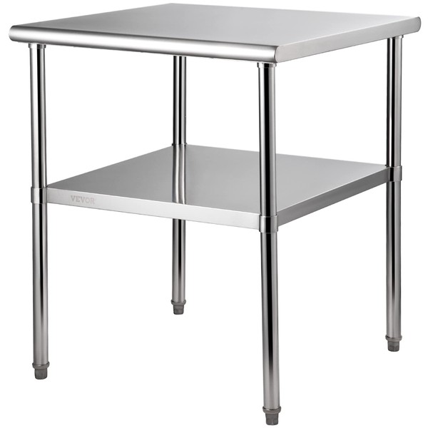 VEVOR Stainless Steel Prep Table, 30 x 30 x 36 Inch, 800lbs Load Capacity Heavy Duty Metal Worktable with Adjustable Undershelf & Feet, Commercial Workstation for Kitchen Garage Restaurant Backyard