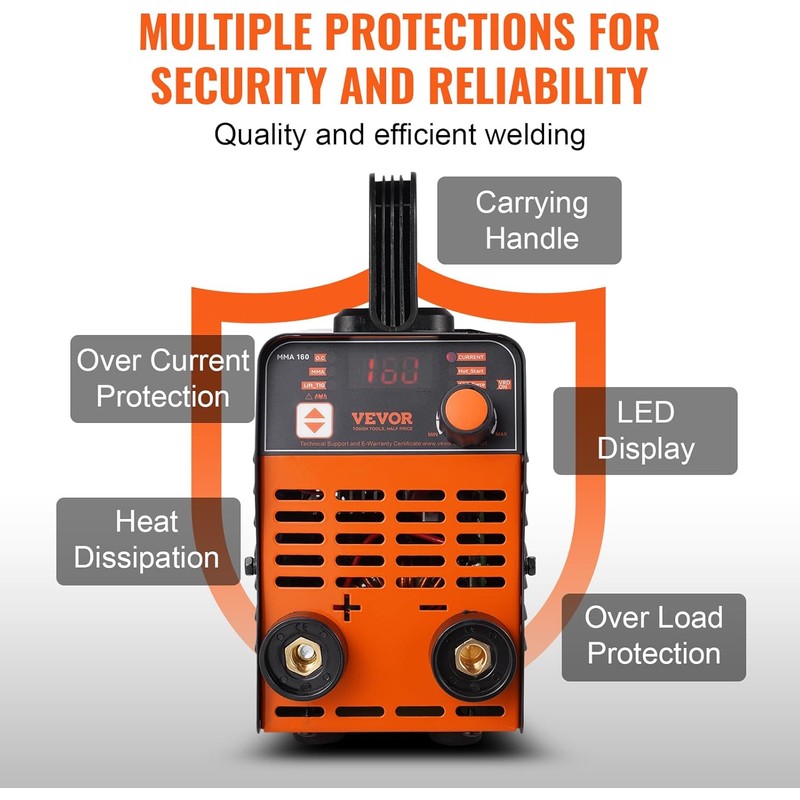 Built with high-quality components specifically designed for top-notch welding. The machine includes automatic protection functions to prevent overheating, over current, and over voltage, ensuring security and preventing damage.