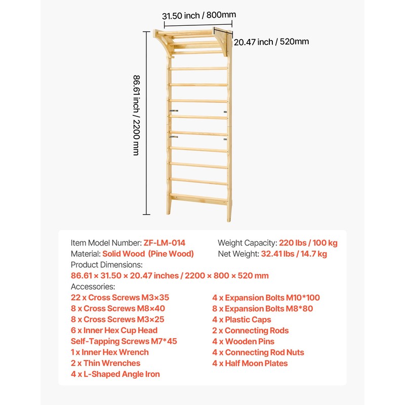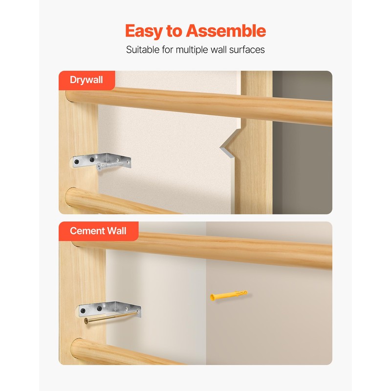 - Strong Load Capacity: Built from solid pine wood, VEVOR Swedish wall ladder supports up to 220 lbs / 100 kg, providing stability for both children and adults. A great way to bring the whole family together for active fun