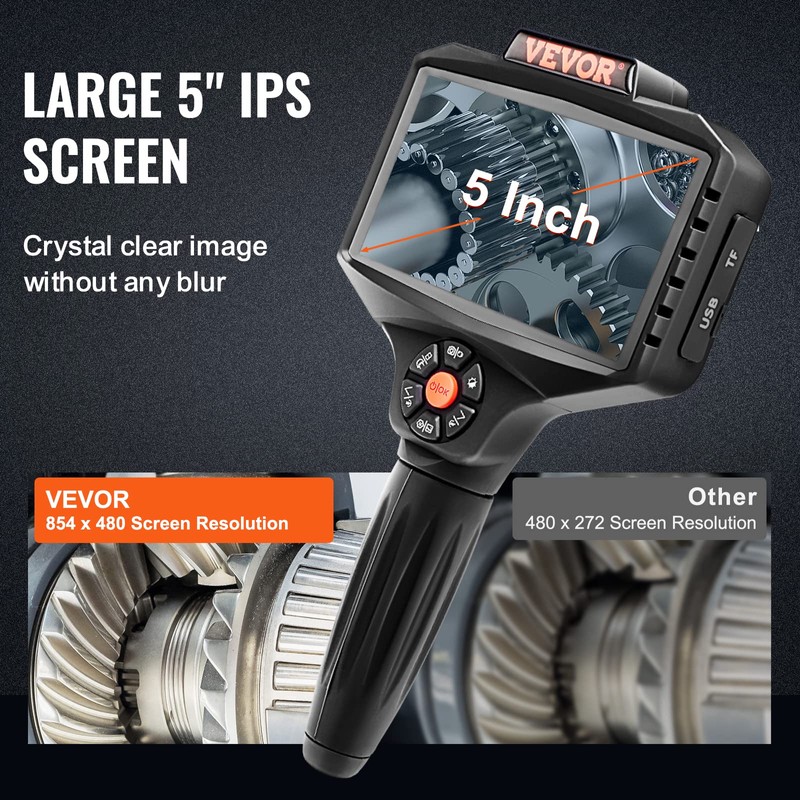 - 【See Beyond the Standard】The upgraded large 5-inch IPS screen delivers a crystal-clear image and video with sharp, true colors. The images can be zoomed by 1x, 2x, 4x, 6x, and 8x, allowing you to better view the interior details Unique 180° image rotation function facilitates more convenience for your work.
