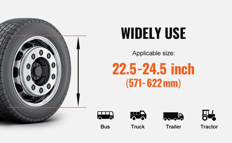 Fit for 22.5-24.5-inch Tires: Specifically designed for medium and heavy motor vehicle tires, our tire mount demount tools are perfect for tires ranging from 22.5 to 24.5 inches (571-622 mm). Whether you own buses, heavy trucks, trailers, tractors, or more, our tire mount tools are the optimal choice for you.