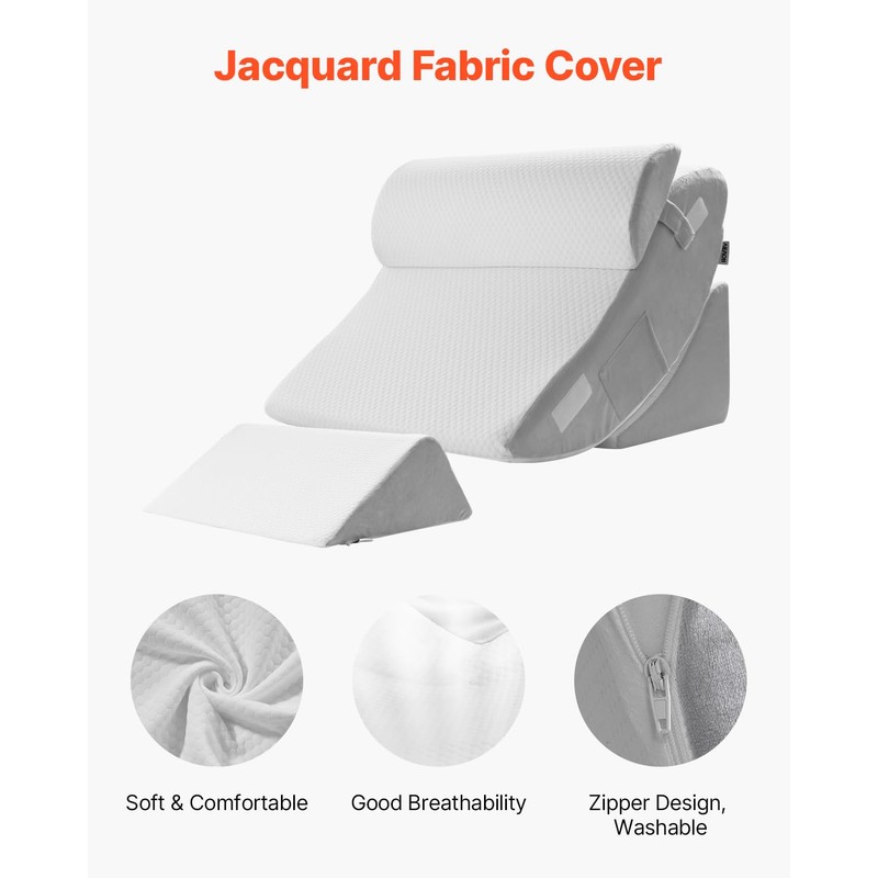 VEVOR Wedge Pillow for Sleeping, 4 Pcs Adjustable Orthopedic Bed Wedge Set, Support Leg Neck Shoulder, Post Surgery Pillow for Back Pain, Acid Reflux, Snoring Relief, Sitting up in Bed, White/Grey