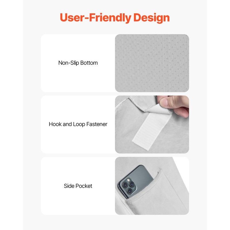 • Thoughtful Design: The bottom glue design is stable and non-slip, the side pocket is convenient for storing small items, and the hook and loop fastener can adjust the pillow height, giving you a full range of thoughtful experiences with this orthopedic bed wedge pillow.