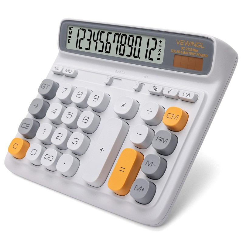 - EXTRA LARGE DISPLAY BIG BUTTONS:The 12 digit desktop calculator has an LCD display that is inclined at a fixed 30 angle, which is exactly in your field of vision and is clearer than the straight display. Jumbo and separate buttons make each press more accurate. Pressing its big buttons is like pressing computer keyboards, very sensitive and you can hear clear tick-tock sounds when you press it. Good choice for accountants who have a lot of calculating work!