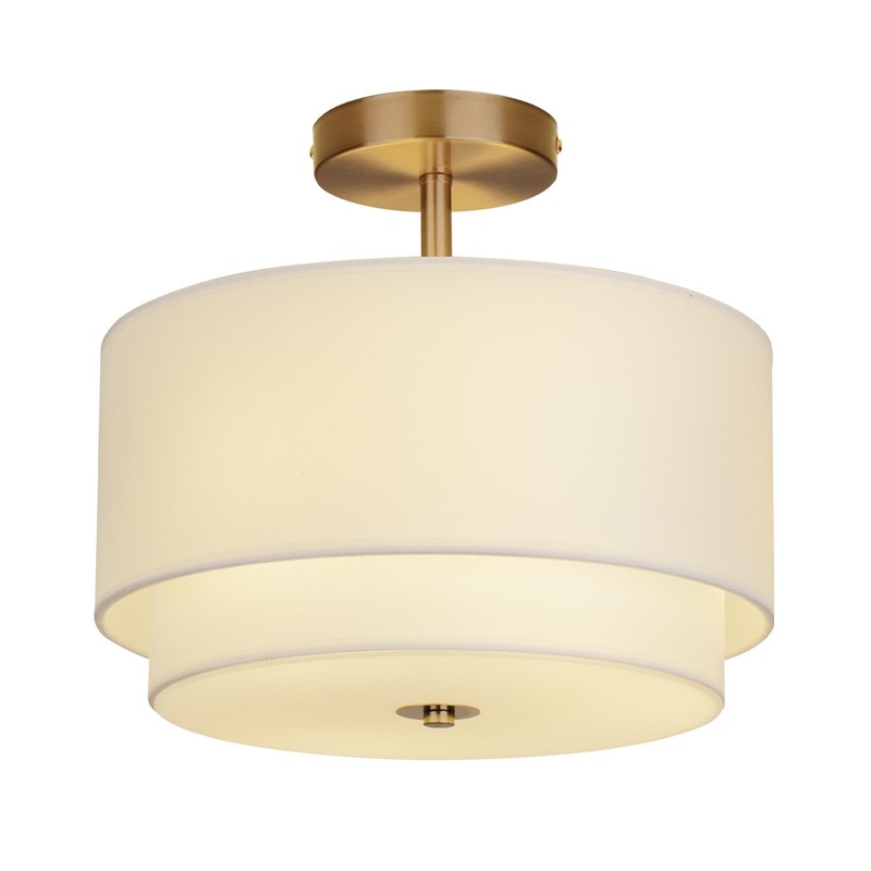 Vexagyle Gold Light Fixtures Ceiling Mount,12.6' Semi Flush Mount Ceiling Light Fixture,Nursery Light Fixture with 2-Layer White Shade,Modern Drum Ceiling Light Fixture for Bedroom,Living Room,Hallway