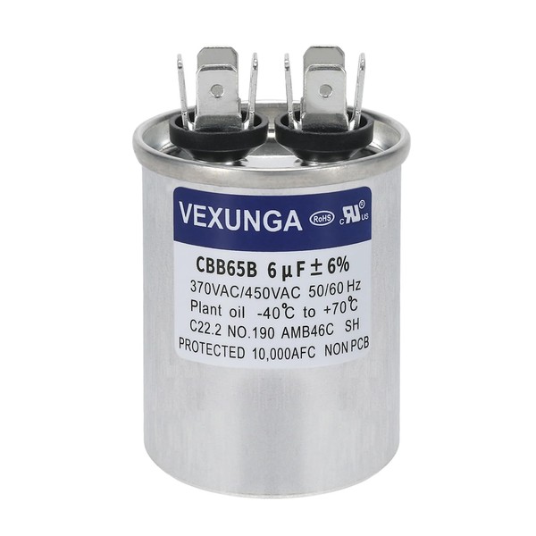 • VEXUNGA 6uF 6% 370/440/450 VAC CBB65 round run start capacitor replacement for ALL 250 & 300 & 370 & 440 & 450 Volt capacitors.