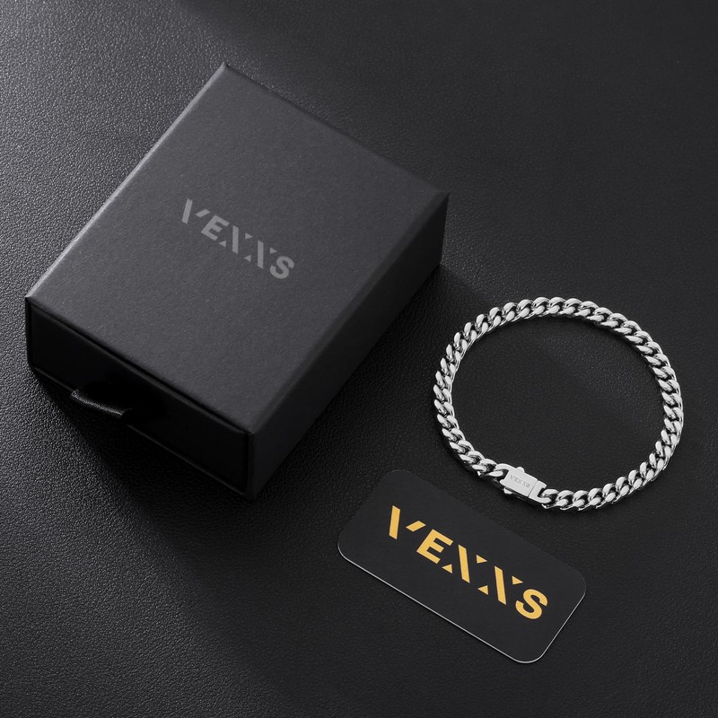 VEXXS Men's Bracelet 5/7 mm, Cuban Bracelets Made of 18 Carat / White Gold Pl...