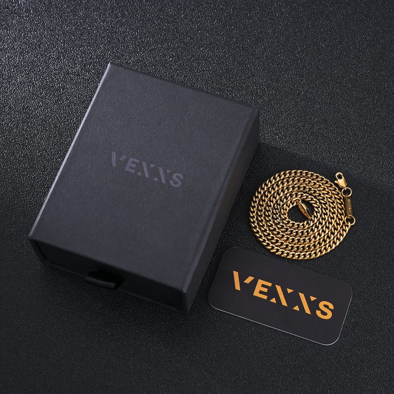 - 【No Color Fading】VEXXS gold chains adopt double electronic PVD Plating and delicately polishing for an everlasting shine. High-tech made necklace for men.