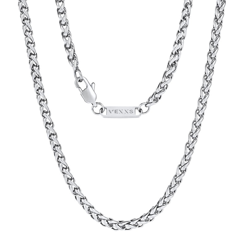 - 【Subtle Wheat Chain Design】VEXXS Wheat Chain features a braided rope design that will elevate your style, day or night. Pair it with your favorite pendant or stack it with the Cuban Chain- 3mm for a layered look!