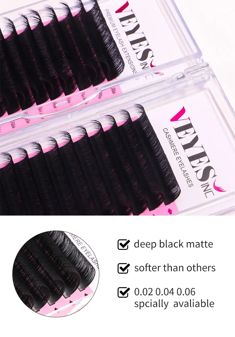 VEYES Custom Handmade 25mm Velvet Cashmere Fur Individual Eyelash Extensions 0.03mm Thick Natural False Eyelashes 16mmFalse Eyelashes Style: Thick, length: Mix, color: 0.07, package: C