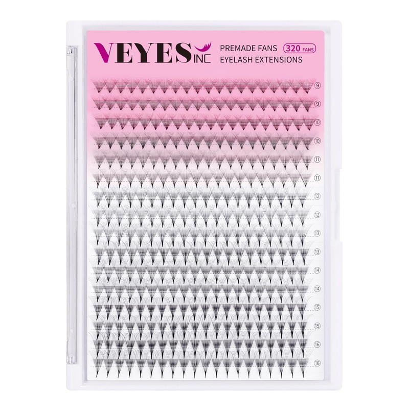 - Specifications:VEYES INC pointy base middle stem premade lash fans extensions 14D 0.05 thickness C curl 9-16mm mixed length 16 rows.