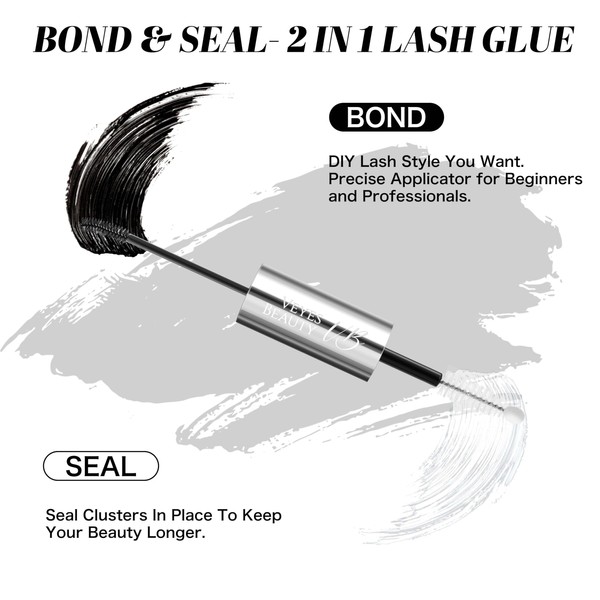 VEYESBEAUTY VEYESBEAUTY Lash Bond and Seal 7ML+7ML Waterproof 2 in 1 Cluster Lash Glue Long Lasting Strong Hold, with Cluster Lash Glue Remover 5ML Eyelash Remover for DIY Lash Extensions at home