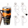 VEYLIN 4Pcs Cute Ghost Straw Covers Cap and 2Pcs Ghost Pendant, Halloween Silicone Reusable Drinking Straw Topper with 2 Styles