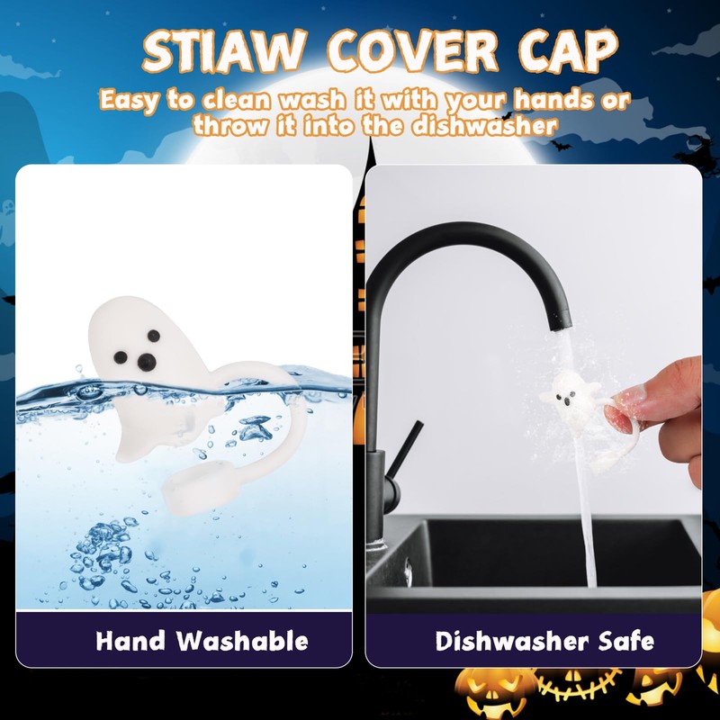 - Reusable Straw Caps: These ghost straw toppers effectively prevent dust and other foreign objects from entering your drink, while making your mood happy when you see cute straw caps and pendants