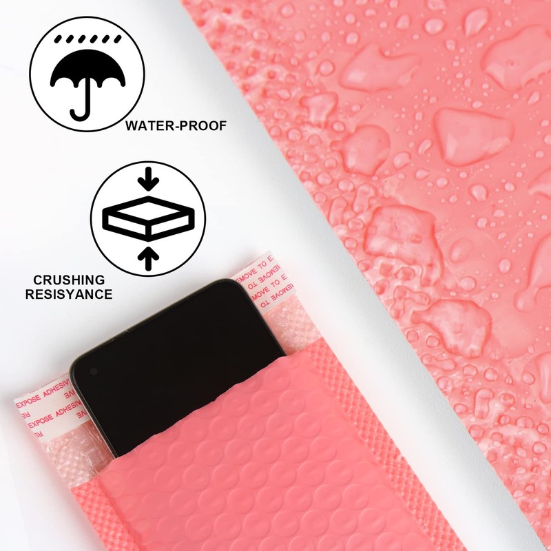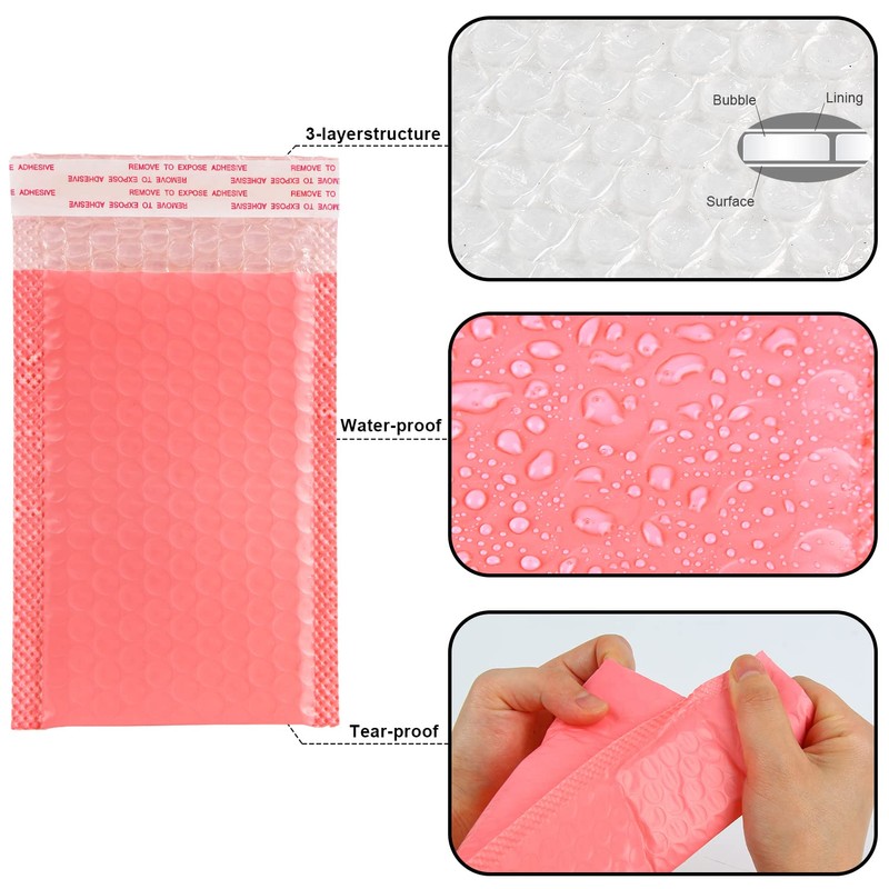 VEYLIN Bubble Mailers,50PCS Poly Bubble Mailers Small Padded Envelopes for Shipping, Mailing, Packaging(110x190mm Pink)