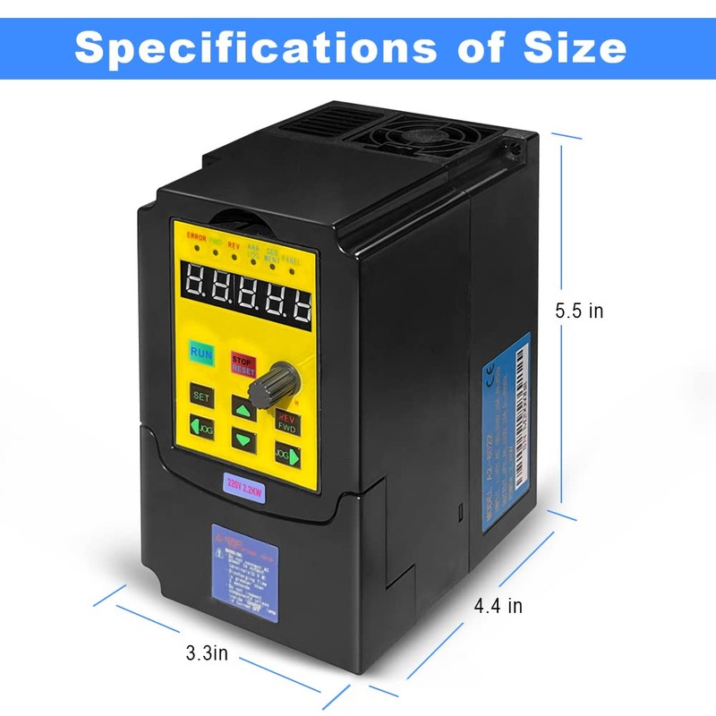 - 【Product Parameters】Power: 2.2KW, input voltage: AC 220V(180-250V),output voltage 220V;input current 10A, output current 15A; input frequency 40-60HZ, output frequency: 0-400HZ; input phase: single-phase or three-phase, output phase: three-phase.