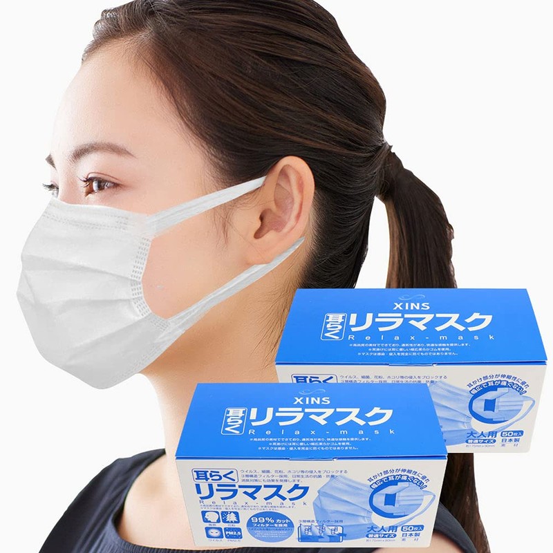 シンズ 日本製 国産サージカルマスク 全国マスク工業会 耳が痛くない 耳らくリラマスク VFE BFE PFE 3層フィルター 不織布 使い捨て 100枚...