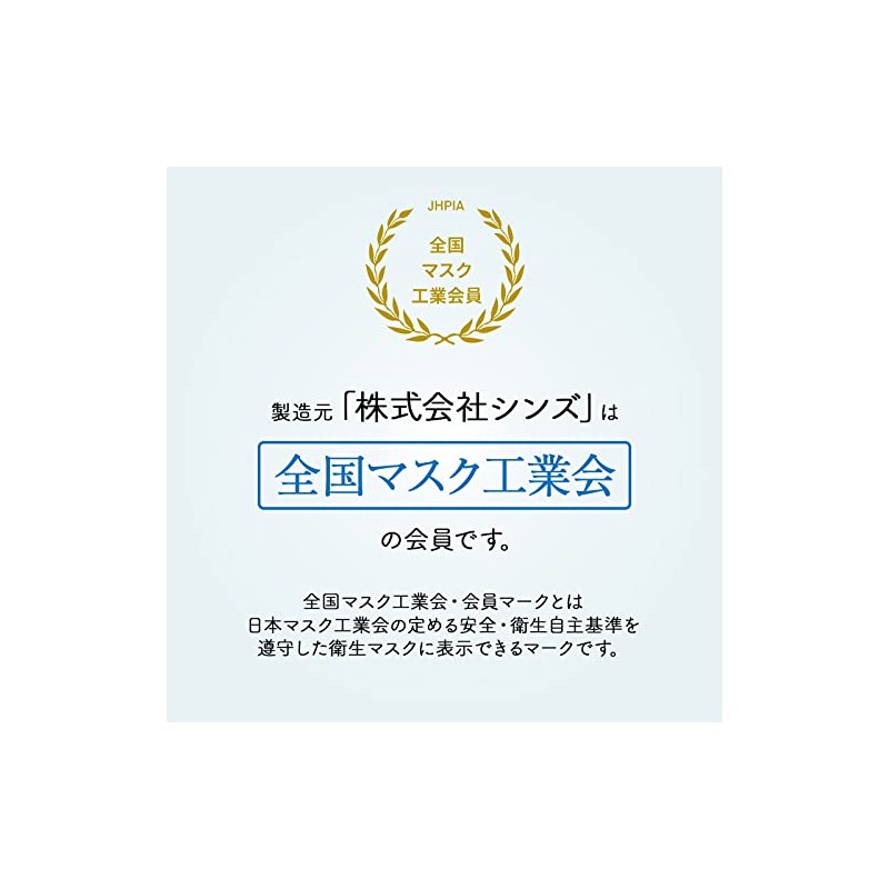 • 製造元「株式会社シンズ」は全国マスク工業会の会員です。全国マスク工業会の定める安全・衛生自主基準を遵守した衛生マスクです。