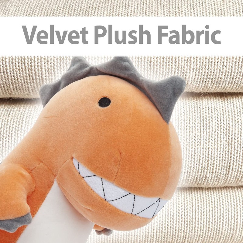 - PREHISTORIC PAL: Not only is this plushie a fantastic decorative addition to any nursery, this gentle giant has unlimited playtime potential! Kids are guaranteed to have endless fun with this huggable Orange T-Rex 30cm Plush.