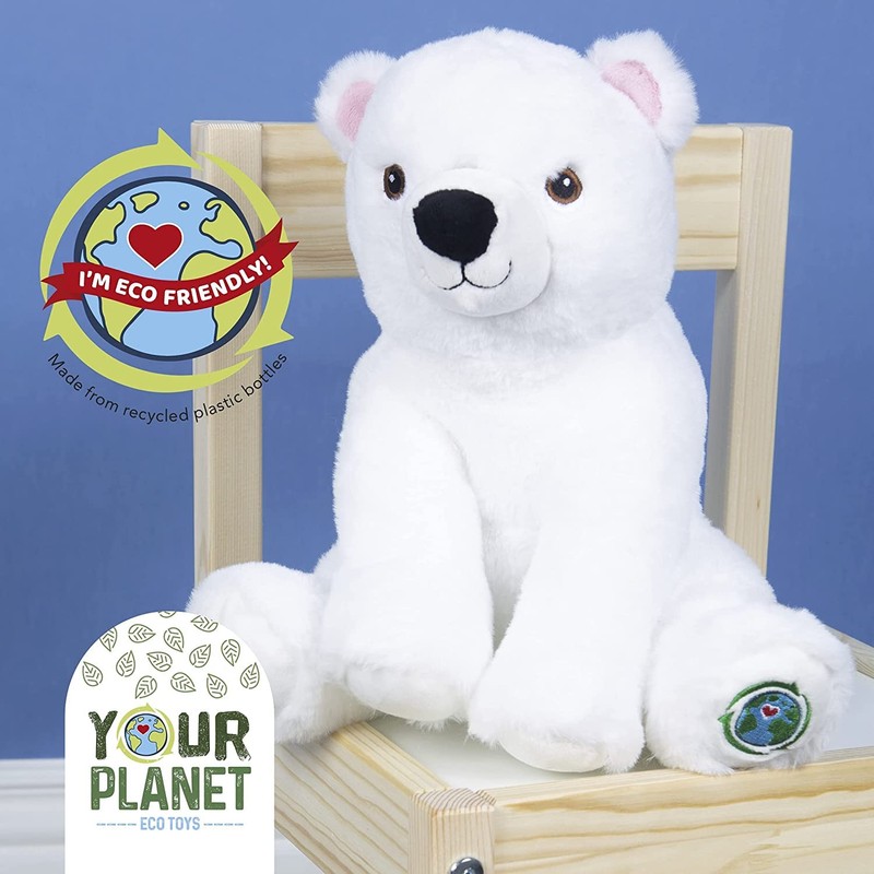 VFM - Polar Bear Soft Toy 28cm Eco Friendly Toy - Super Soft Cuddly White Arctic Animal Fluffy Plush With Embroidered Details 100% Recycled Material - Your Planet