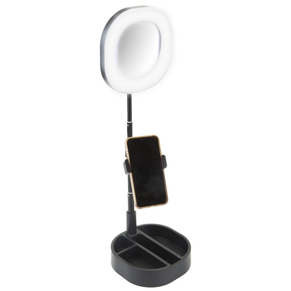 - Make Up Light: Attached phone holder means it’s great as a selfie mirror or makeup mirror with light. Turn on light and use the phone as you apply your make up, or film yourself for a live stream.