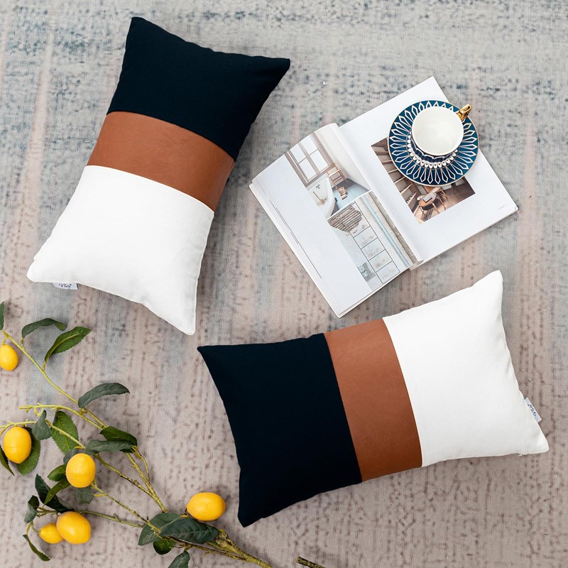 - These modern pillow covers are made of durable 100% cotton canvas and high quality vegan faux leather , comfortable and super great touch. SAME PATTERN on front side and back side.