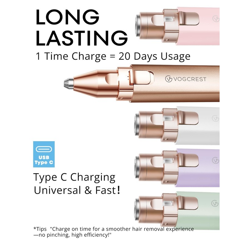 - 2 IN 1: VOGCREST facial hair remover and eyebrow trimmer for women is ingeniously designed to remove face and eyebrow hair, leaving you free from any worries about unwanted hair.