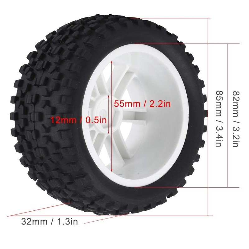 VGEBY1 RC Tyres, Pack of 4 1/10 Onroad RC Wheel Vehicle Tyres Buggy Chain Car Truck Rubber Tyres Wheel Tyres for ZD Racing Buggy Crawler Car (White)