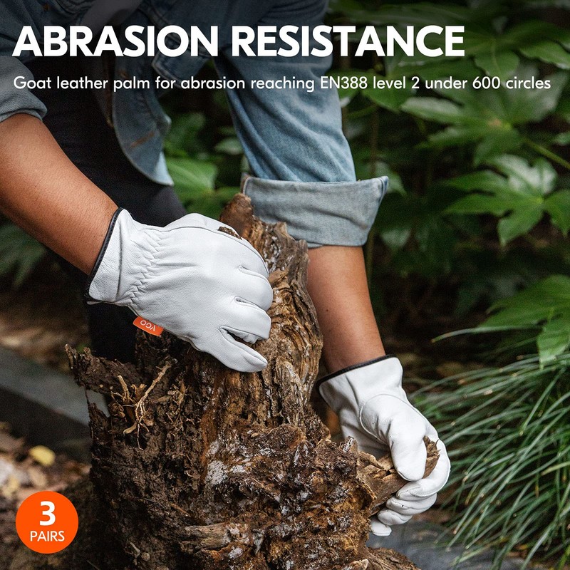 - MATERIAL - Made from natural premium genuine goat leather for abrasion reaching EN388 level 2 under 600 circles, provides excellent grip and high performance of softness