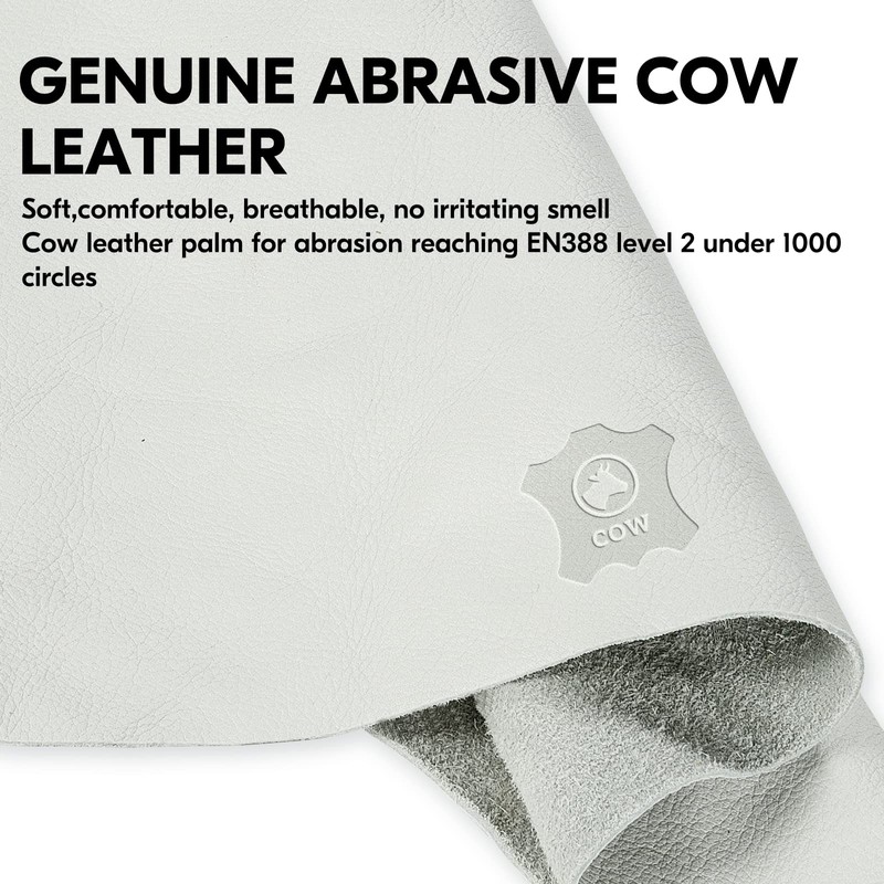 - PALM & BACK & CUFF - High visibility orange stretch spandex back also provides exceptionally dexterity and breathability. Premium Goatskin leather palm provides comfort and dexterity for all-day wear; Textured PVC palm patches offer extra durability. Neoprene cuff, hook and loop closure ensures a firm fitting
