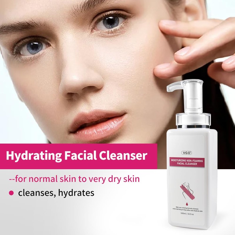 VGO Moisturizing Non-Foaming Cleanser for All Skin Acne Face Wash, Oil Absorbing Deep Pore Cleanser, Oil Free, UnScent and Safe for Sensitive Skin, 500ml / 16.9oz
