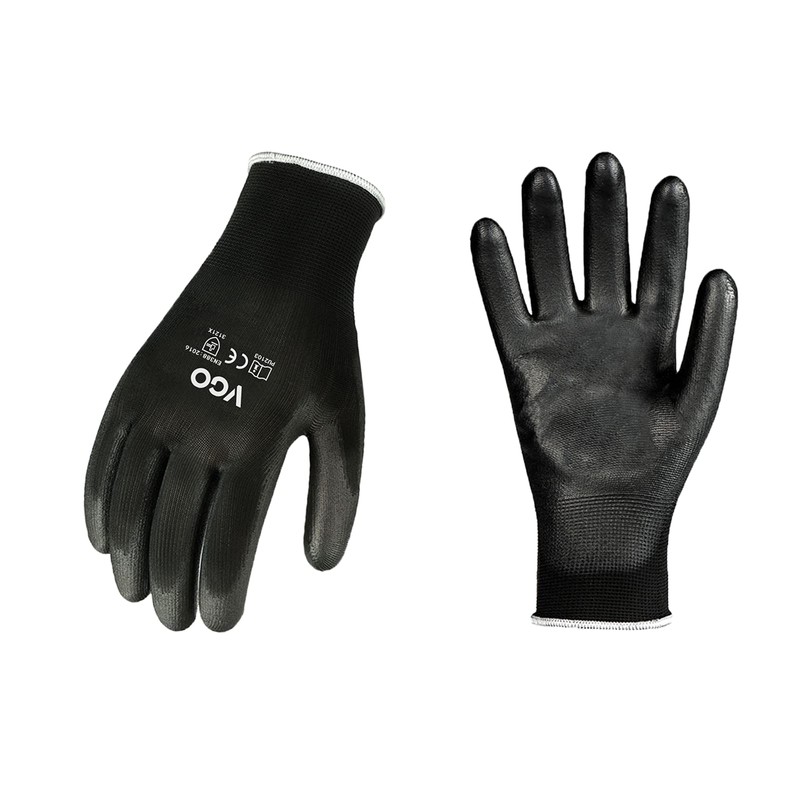[Vgo...] Polyurethane Grip Gloves, 15 Pairs, Anti-Slip, Thin, Work Gloves, Gardening Work Gloves, Concrete, Construction, Work Gloves, Garden Gloves (15 Pairs, Size M, Black, PU2103P15)