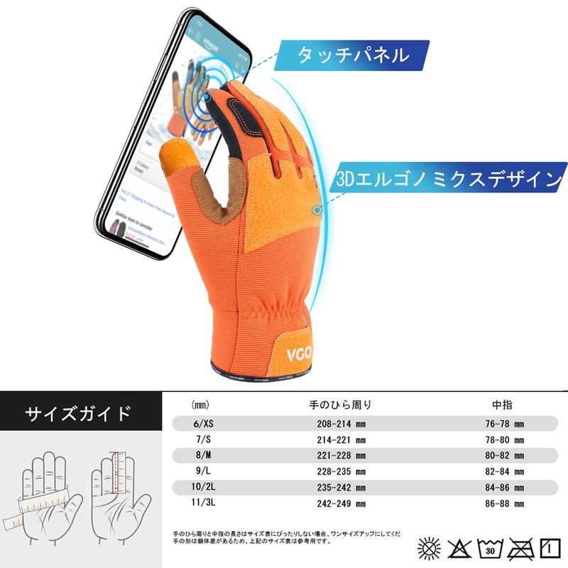 [Vgo...] SL7475FLWP Thermal Gardening Gloves, Rose Gloves, Synthetic Leather, Fleece-Lined, Gardening Gloves, Splash Prevention, Touch Panel Compatible, Gardening Supplies, Work Gloves (Orange, M)