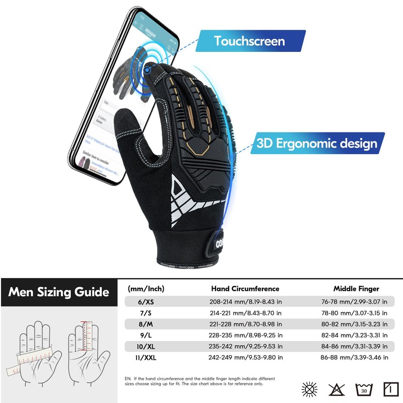 - Impact Resistant & Vibration Absorption: 3D foam patches from the back of the hand to the fingertips. Cowhide leather palm and 20,000 times abrasion resistant reinforcement patch for added durability