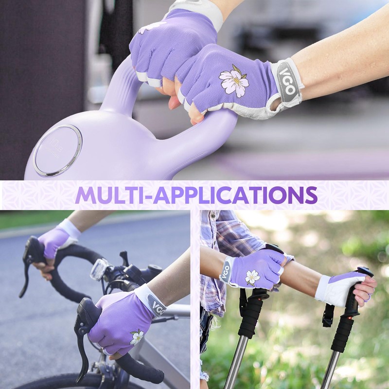 Vgo... VGO1-Pair Fingerless Workout Gloves for Men & Women - Weight Lifting Gym Gloves with Padded Palm, Anti-Slip Grip, Breathable Mesh for Training, Cycling, Fitness(AL0030,Purple,L)