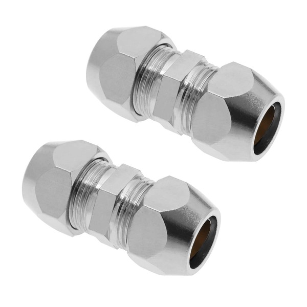 VGOL 2PCS 10mm Double Ferrule Pipe Fitting Straight Compression Fitting Adapter Nickel Plated Copper Air Conditioning Pipe Coupling Adapter for Plumbing