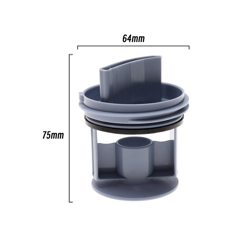 - Type: Blue washing machine drain filter, Dimensions: the dimensions height 75 mm and diameter 64 mm.