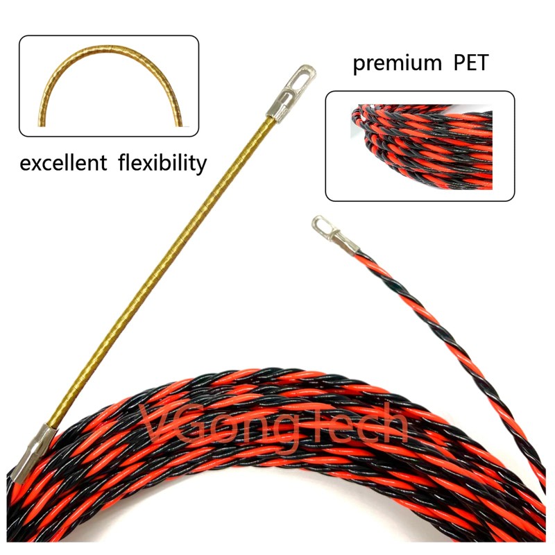 VGongTech 1/5" 50ft Fish Tape Cable Puller Cable Rods Kit PET Electrical Cable Puller Through Wall Wire Guide Device Threader Fish Cable Fastener 15M
